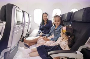 The Sky Couch, popular among family travelers, allows passengers to convert three economy seats into a flat sofa bed for an additional fee of 20,000 won.