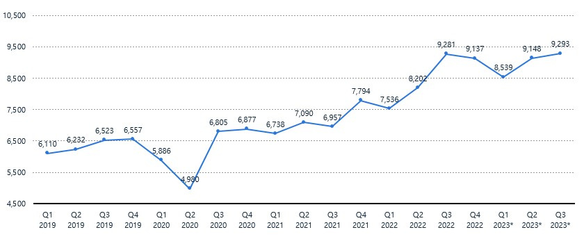 <2019-2023 분기별 건축 공사 가치*>