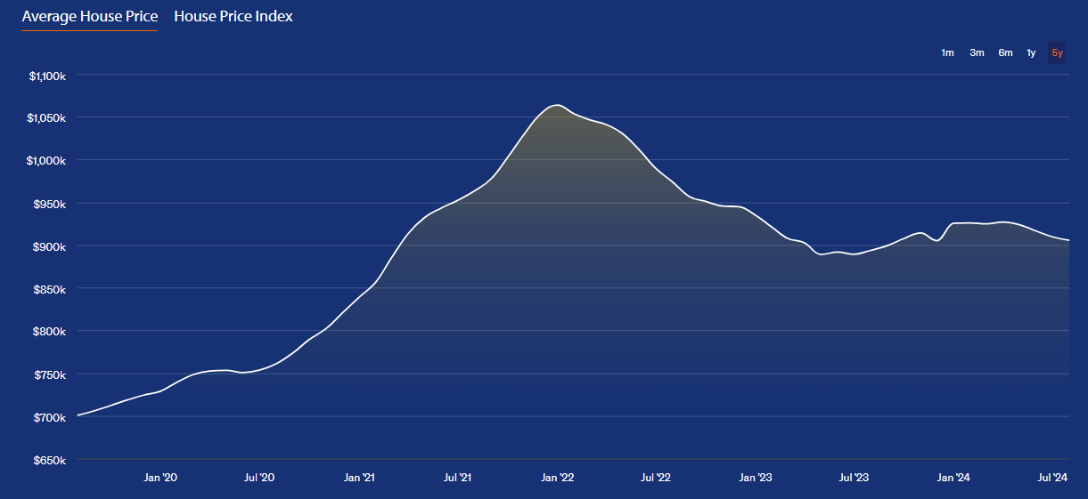 뉴질랜드의 부동산 시장은 COVID-19 팬데믹 동안 중앙은행(RBNZ)의 기준금리 인하와 정부의 주택 건설 촉진 정책으로 인해 급격한 상승세를 기록했다. 오클랜드와 같은 주요 도시에서는 주택 가격이 20% 이상 상승하며 2021년 하반기에서 2022년 초에 역사상 최고치를 기록한 바 있다. 2024년 7월 기준 뉴질랜드 평균 집값은 정점 대비 약 15% 가량 하락했다.