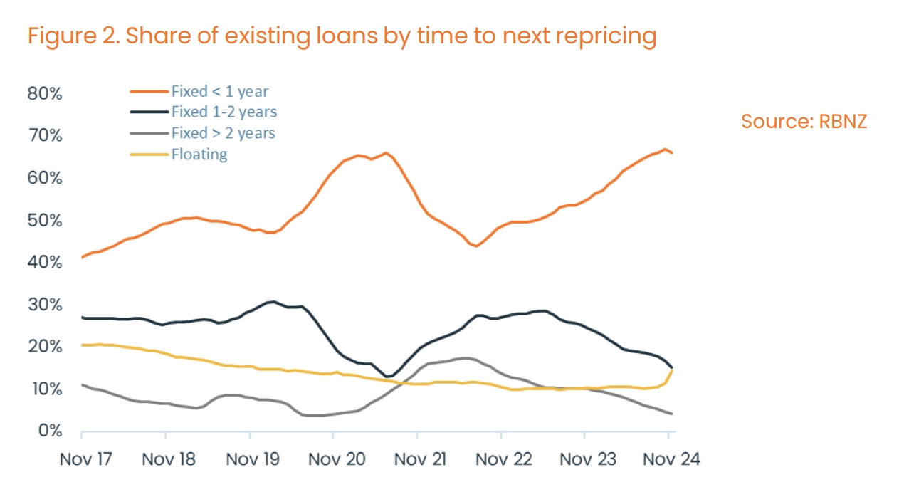 모기지 대출 활동은 1년 넘게 증가해왔으며 최근 몇 달 간 그 속도가 빨라졌다. 9월에서 11월 사이 대출 활동은 작년 동기 대비 평균 13억 뉴질랜드 달러 증가했으며, 이전 6개월 간의 증가액은 8억 뉴질랜드 달러였다.