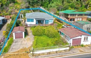 ▲ This red-stickered house was the only one in Thornton Bay to be taken out by a slip at Auckland Anniversary Weekend. The property was auctioned with a $1 reserve, and sold for $375,000.