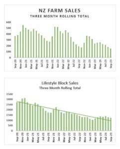 Sales of farms and lifestyle blocks continued their downward slide in September
