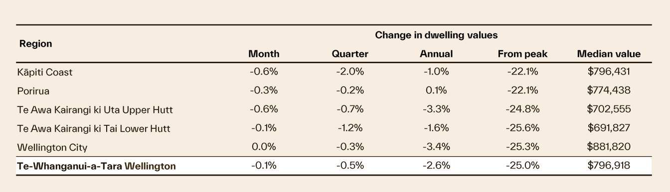 8월 지역 전반 하락, 웰링턴 시티 12개월간 -3.4% 하락