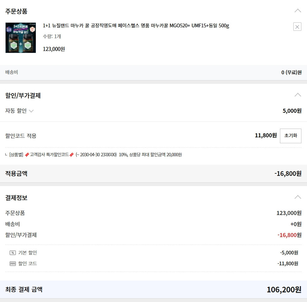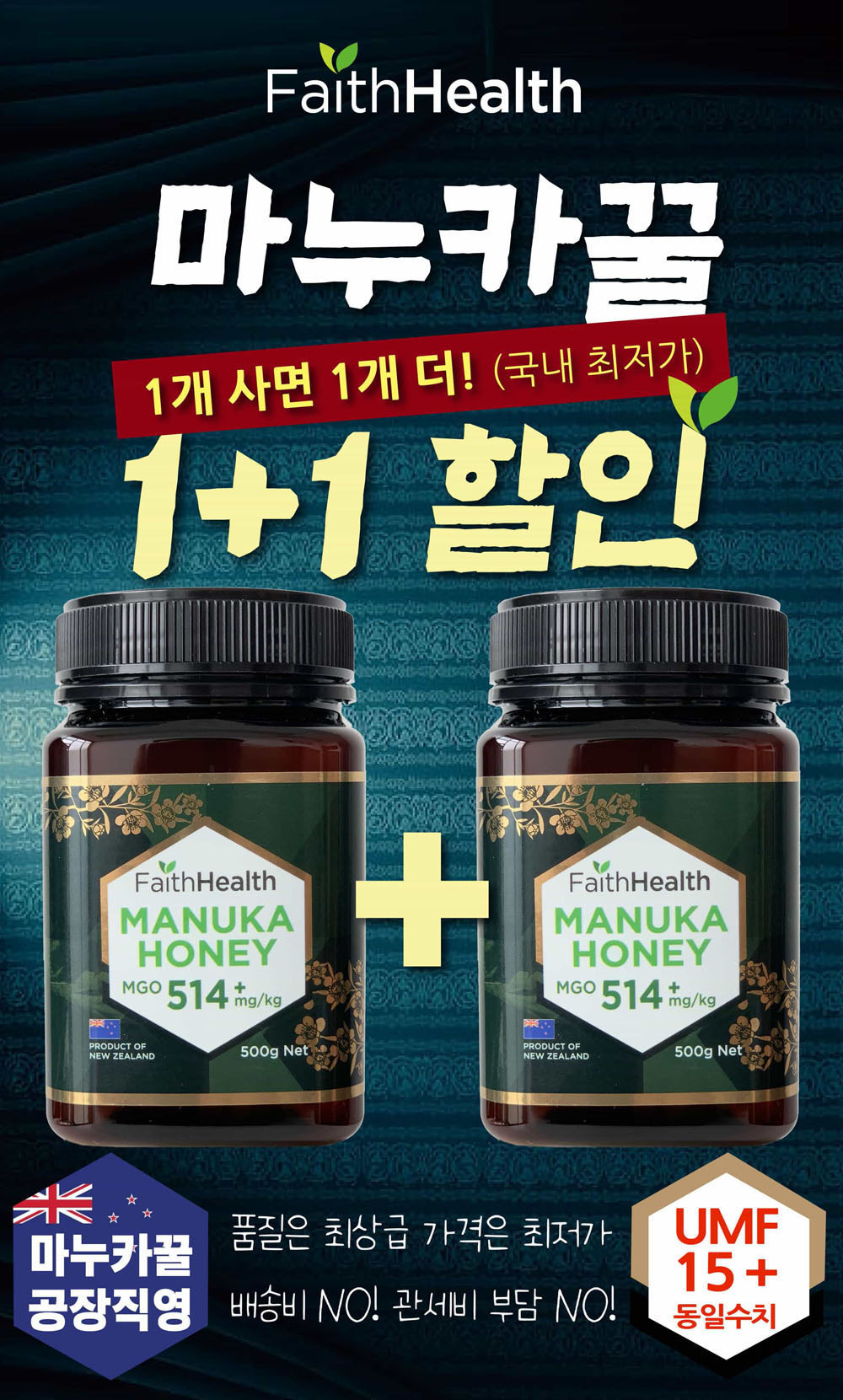 1+1 뉴질랜드 마누카 꿀 공장직영도매 페이스헬스 명품 마누카꿀 MGO520+ UMF15+동일 500g - 페이스헬
