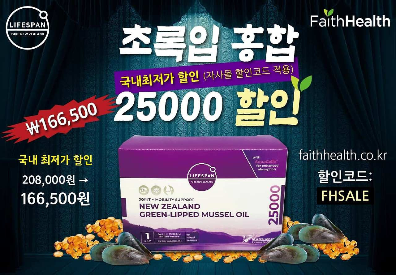 🎀 [특가할인] 라이프스팬 초록홍합오일 25000mg(90캡슐) 🎀