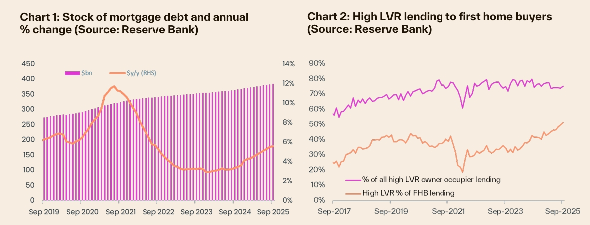 9월 기준, 주거용 모기지 대출자에게 고LVR(보증금 20% 미만) 대출은 전체의 13%에 불과했다. 공식 20% 상한과 은행 내부 한도 15%보다 낮은 수준이다. 투자자의 경우 30% 미만 보증금 대출은 0.5%에 불과해 여전히 높은 신용 제한을 받고 있음을 보여준다. 12월 1일부터 LVR 규제가 완화되면, 특히 투자자에게 일정 부분 숨통이 트일 것으로 전망된다. 동시에 첫 집 구매자에게 사전 승인 접근성이 확대될 가능성도 있다.