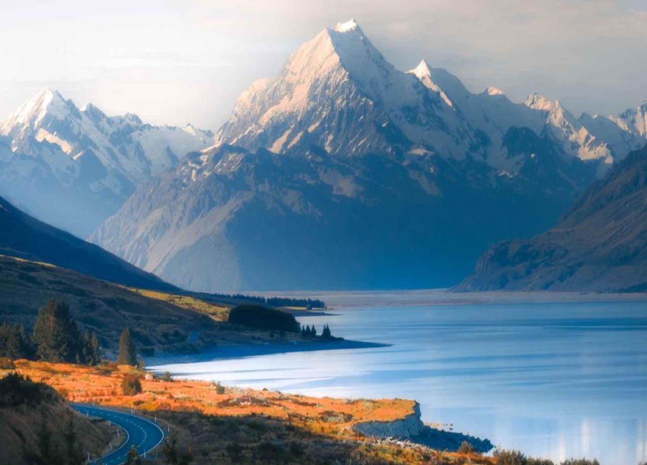 뉴질랜드 하면 빼놓을 수 없는 명소 중 하나가 마운트 쿡(Mount Cook)이다. 11월의 남섬은 겨울이 끝나가면서도 산에는 여전히 눈이 남아 있어 하얀 설경이 인상적이다. 여름에는 눈이 거의 녹아버려서 설경이 덜 하지만, 11월은 설산의 웅장함을 사진으로 담기에 아주 좋은 시기다.
