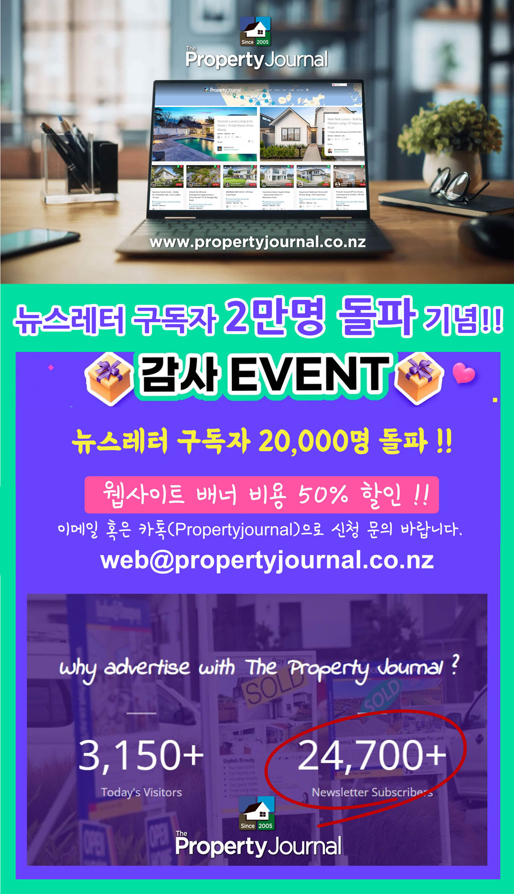 안녕하세요, 뉴질랜드 한국 교민 최초 “부동산/경제 전문 웹사이트” 프로퍼티 저널입니다. 2005년에 창간 이후로 많은 신문 구독자와 저희 홈페이지의 방문자로 꾸준히 성장해 온 한국 교